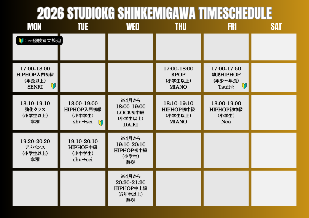 ※クラスの定員、イベント期間中は振替ができない場合もあります。